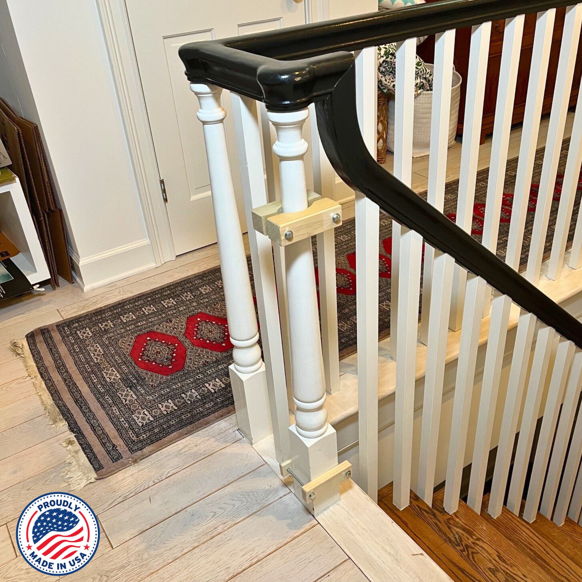 Install your gate securely without damaging your woodwork using our Round & Square Clamp Set. This set includes one round clamp and one square clamp, both made from solid wood to provide a strong, screw-free mounting solution for your gate. The round clamp fits posts with a diameter of 2″ to 3″, while the square clamp fits square posts up to 3.5″ wide and 2.75″–3.5″ deep, ideal for mixed banister setups.